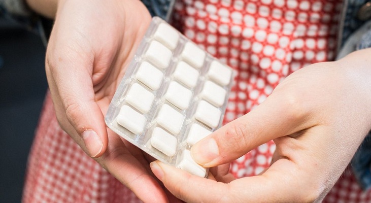 Precaución: después de retirar la pastilla o goma de mascar, debe envolverla en papel y tirarla en un lugar al que no puedan acceder los niños y mascotas.